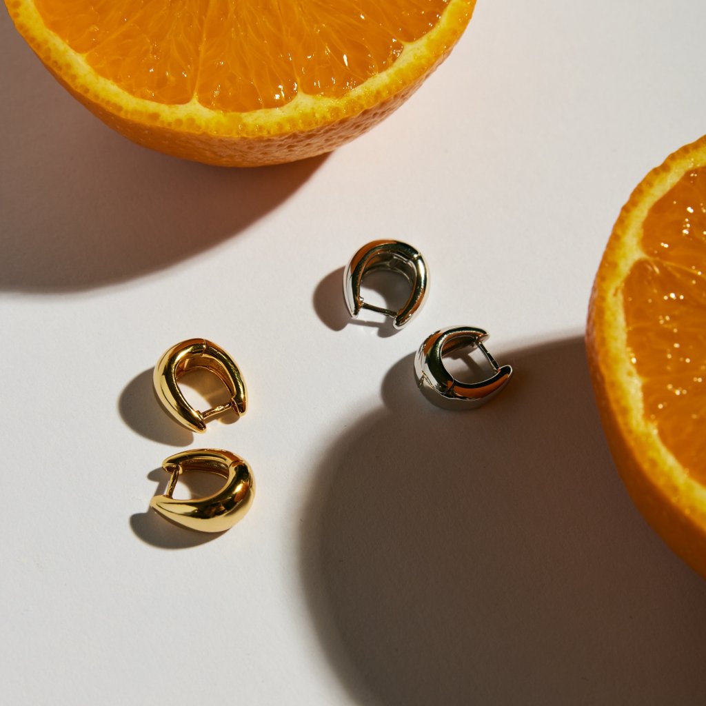 Součástí kolekce jsou i náušnice BOLD DOME HUGGIE, které vynikají originálním tvarem a kontrastem matného a lesklého povrchu. Tyto náušnice jsou vyrobené z pozlacené mosazi a jsou ideální volbou pro ty, kteří chtějí dodat outfitu osobitý výraz. Mohou být nošeny samostatně jako dominantní prvek nebo kombinovány s jemnějšími šperky pro ještě stylovější efekt.