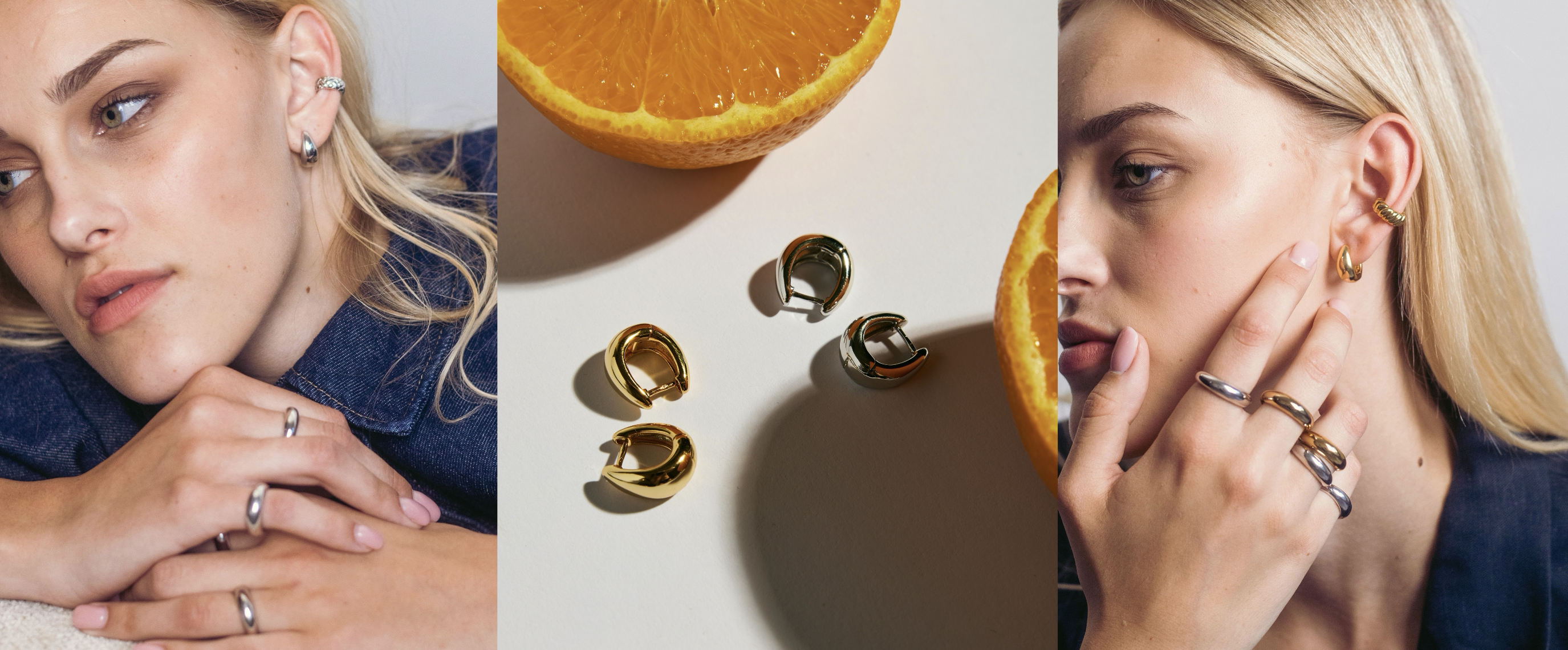 Součástí kolekce jsou i náušnice BOLD DOME HUGGIE, které vynikají originálním tvarem a kontrastem matného a lesklého povrchu. Tyto náušnice jsou vyrobené z pozlacené mosazi a jsou ideální volbou pro ty, kteří chtějí dodat outfitu osobitý výraz. Mohou být nošeny samostatně jako dominantní prvek nebo kombinovány s jemnějšími šperky pro ještě stylovější efekt.