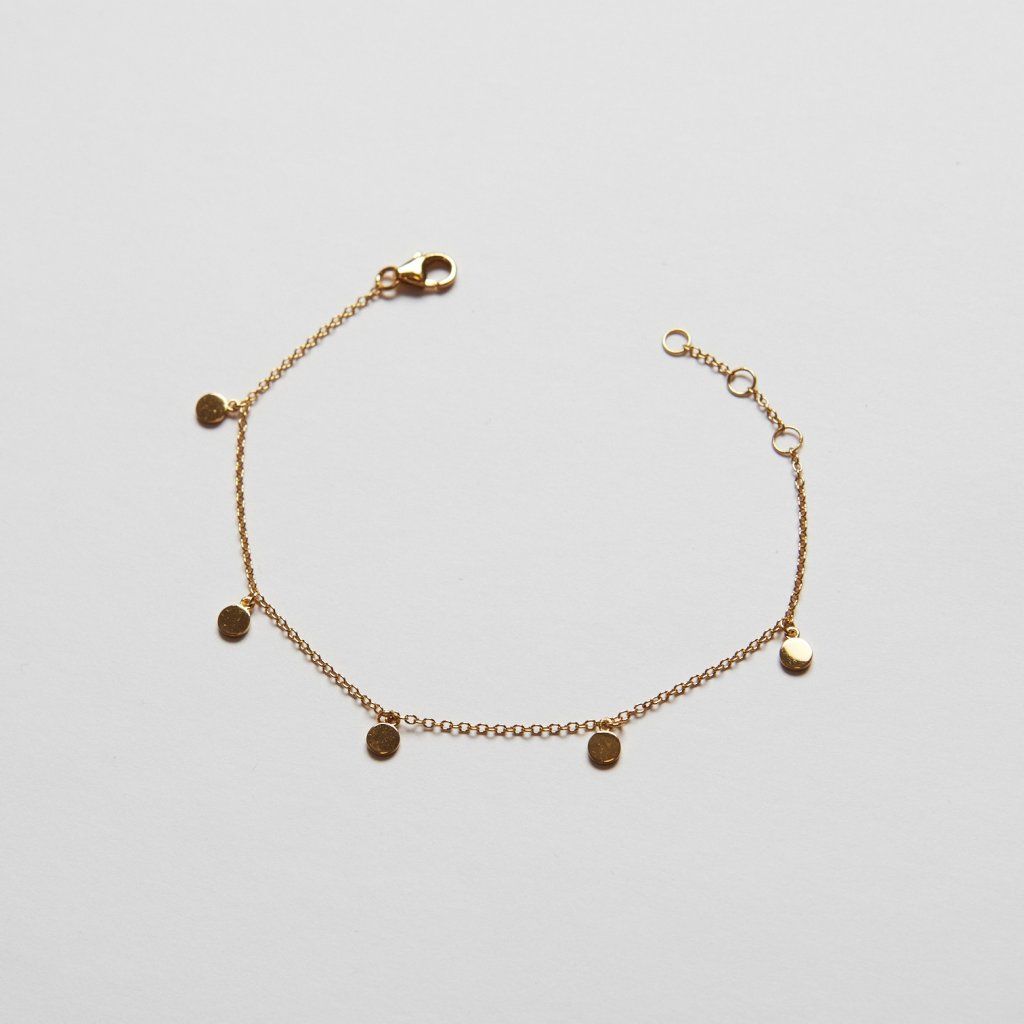 Pět zrcadlově zakulacených disků, které se spojují v elegantní a jemný řetízek. Je skvělým kouskem pro každé zápěstí, ať už jej budete nosit samostatně nebo jej budete vrstvit s jinými náramky. Prohlédněte si náušnice GOLD MINI DISC ve stejném stylu nebo mrkněte na stříbrnou variantu SILVER SHAKER.