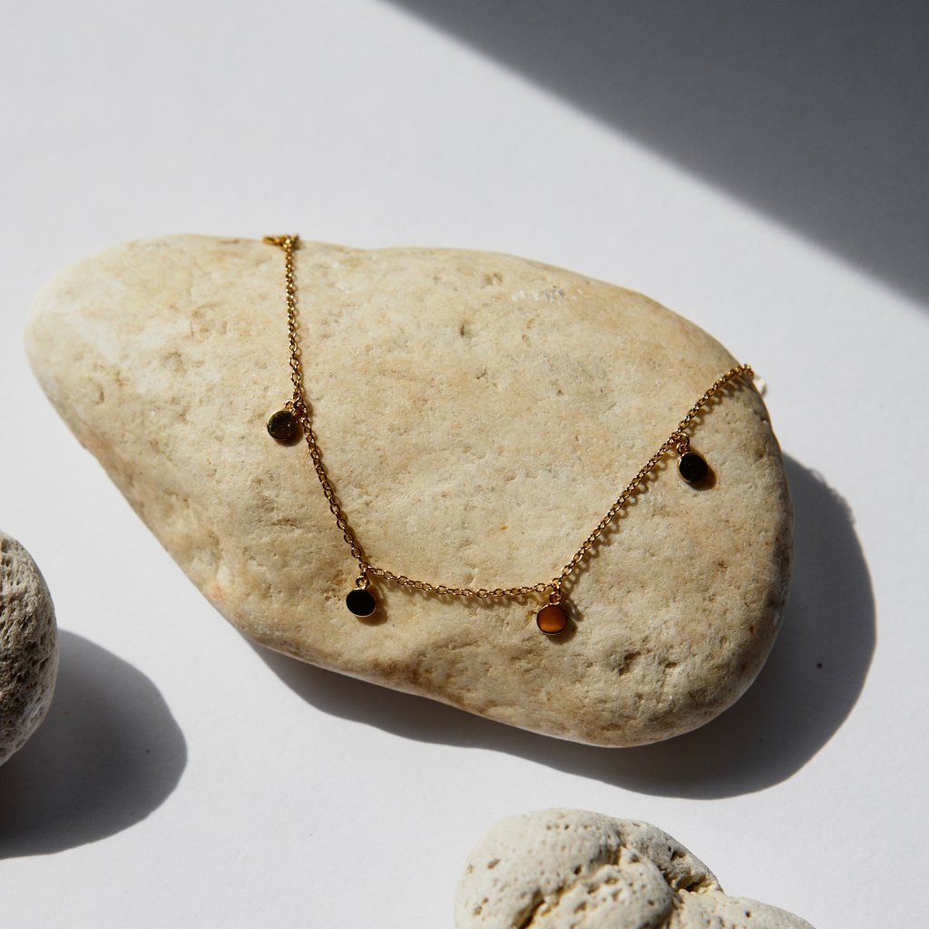 Šperk je vyroben z mosazi, který je pozlacený (tzv. GOLD PLATED). Má na sobě tenkou vrstvu 14k nebo 18k zlata. Ovšem na mosazi drží pozlacení o něco lépe než na stříbře, je odolnější. Pozlacená mosaz neobsahuje nikl ani olovo. Šperky z pozlacené mosazi jsou nealergenní a jejich voděodolný lak má lesk, který vydrží. I přesto upozorňujeme, že pozlacení těchto šperků není zcela trvalé. Výdrž pozlacení závisí od Vašeho zacházení. Tipy na údržbu pozlacených šperků z mosazi najdete zde.