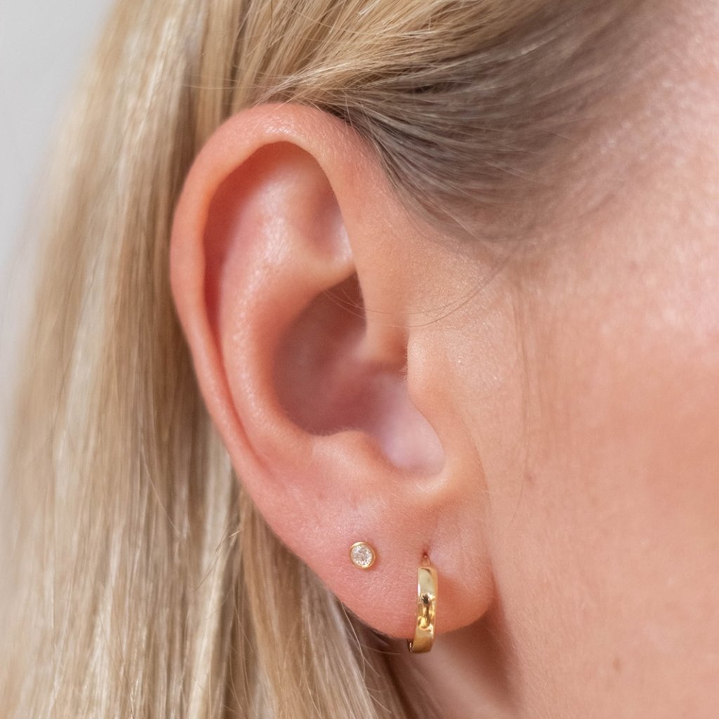 Minimalistický piercing do ucha s detailem drobného vsazeného zirkonu. Je ideální pro všechny typy piercingu tragusu, ušního lalůčku nebo chrupavky. Díky hladkému, zaoblenému povrchu a pohodlnému plochému zadnímu dílu na závit bude ideální pro každodenní nošení. Kombinujte jej s výraznějšími náušnicemi pro odvážnější look. Dostupný také ve stříbrné variantě SILVER SPARKLE MINI nebo ve variantě 3 mm GOLD SPARKLE či 2 mm GOLD SPARKLE BABY.