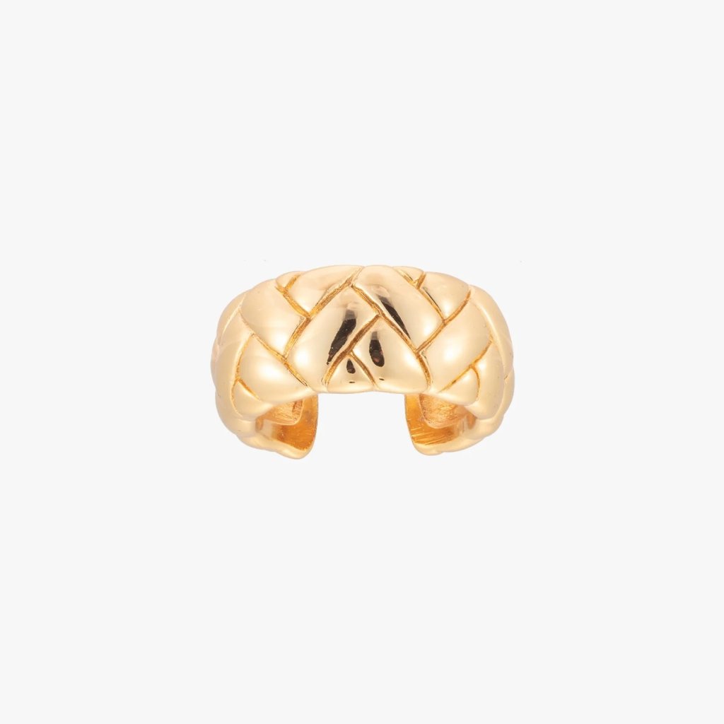 Nasazovací obruč náušnice tzv. Cuff ve stylu manžety, vyzařuje nadčasovou eleganci a půvab. Pokud nemáte odvahu si píchnout další dírku do ucha, cuff je přímo pro Vás! Cuff jednoduše nasadíte do středu ucha a případně lehce (opatrně!) k uchu přitisknete, aby Vám náušnice nespadla. Prodává se jednotlivě i ve stříbrné variantě WEAVE SILVER.