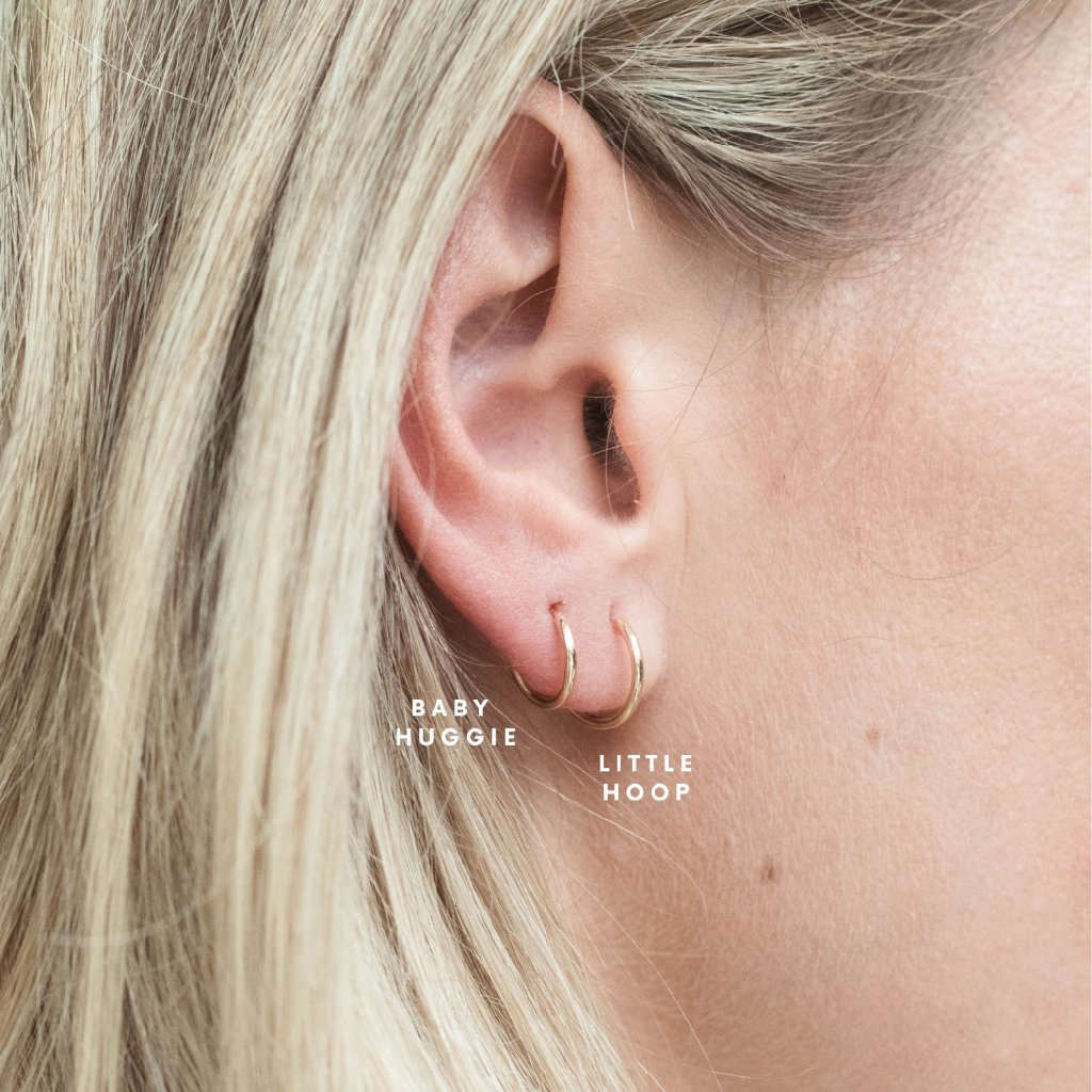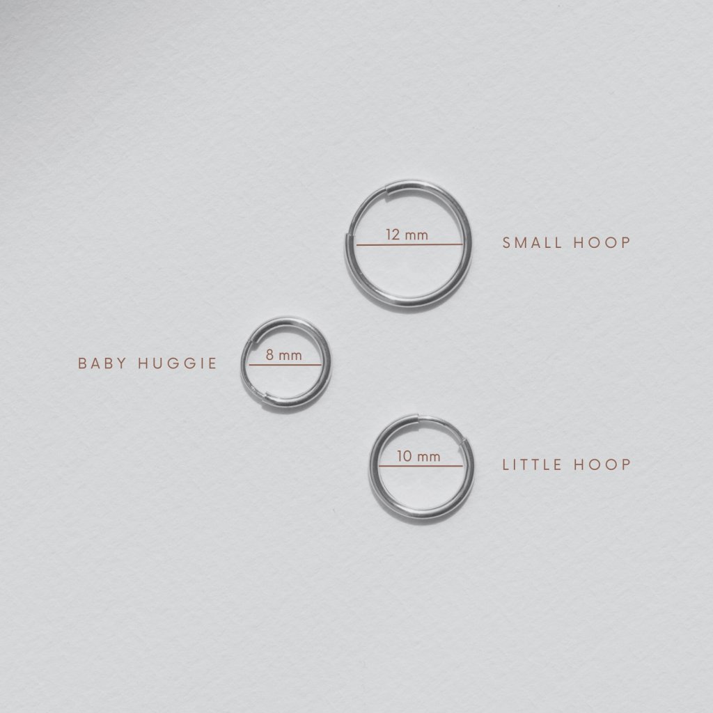 Drobné kruhové náušnice typu huggie jsou nezbytnou součástí vašich uší a všech šperkovnic vůbec! Náušnice LITTLE HOOP jsou vhodné pro chrupavky a vícenásobné piercingy. Kroužky totiž nikdy nevyjdou z módy a kombinace s nimi je opravdu jednoduchá, hodí se naprosto ke všemu. Koukněte na video zde, kde ukazujeme podobné velikosti náušnic. Hledáte zlatou variantu? LITTLE HOOP GOLD vás nadchnou.