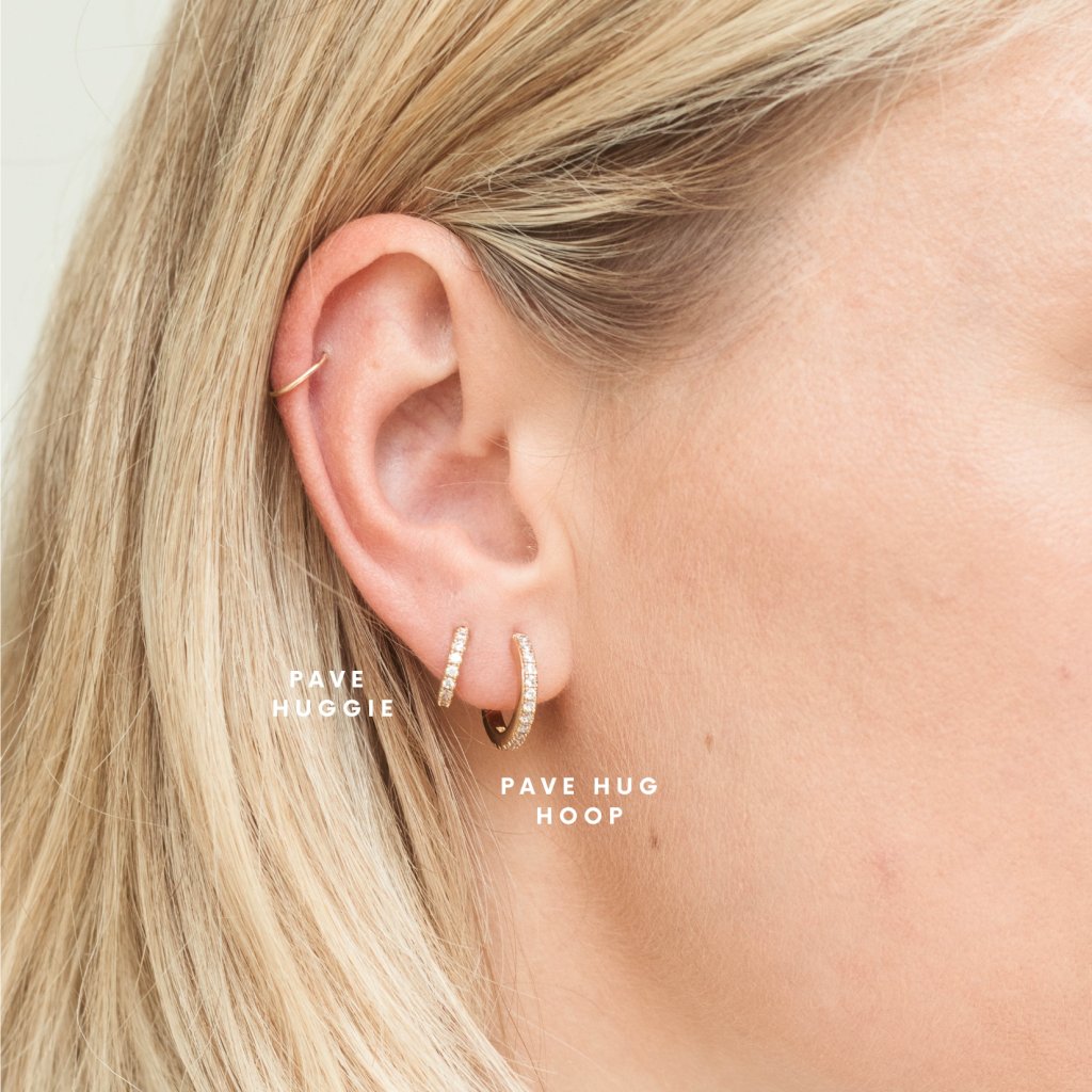 Náušnice PAVE HUG jsou vetší variantou našeho bestselleru náušnic GOLD PAVE HUGGIE. Dokonale blyštící se náušnice, díky kterým mimo jiné ozdobíte i conch či helix piercing. Díky jemným zirkonům se budou ve vašem uchu nádherné vyjímat. Koukněte na video zde, kde ukazujeme podobné velikosti náušnic. Objevte také stříbrné provedení PAVE HUG SILVER HOOP.