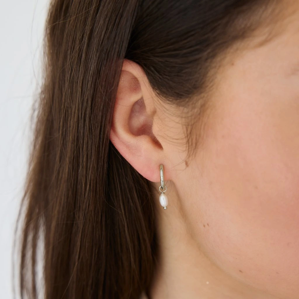 Pearl Hoop Silver náušnice