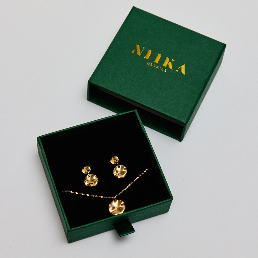 Dárkový set Vám dodáme v nachystaných tmavozelených krabičkách se zlatých logem NIIKA. Minimalistická dárková krabička byla navržena přímo pro dokonalý dárek a tak ji můžete rovnou darovat.