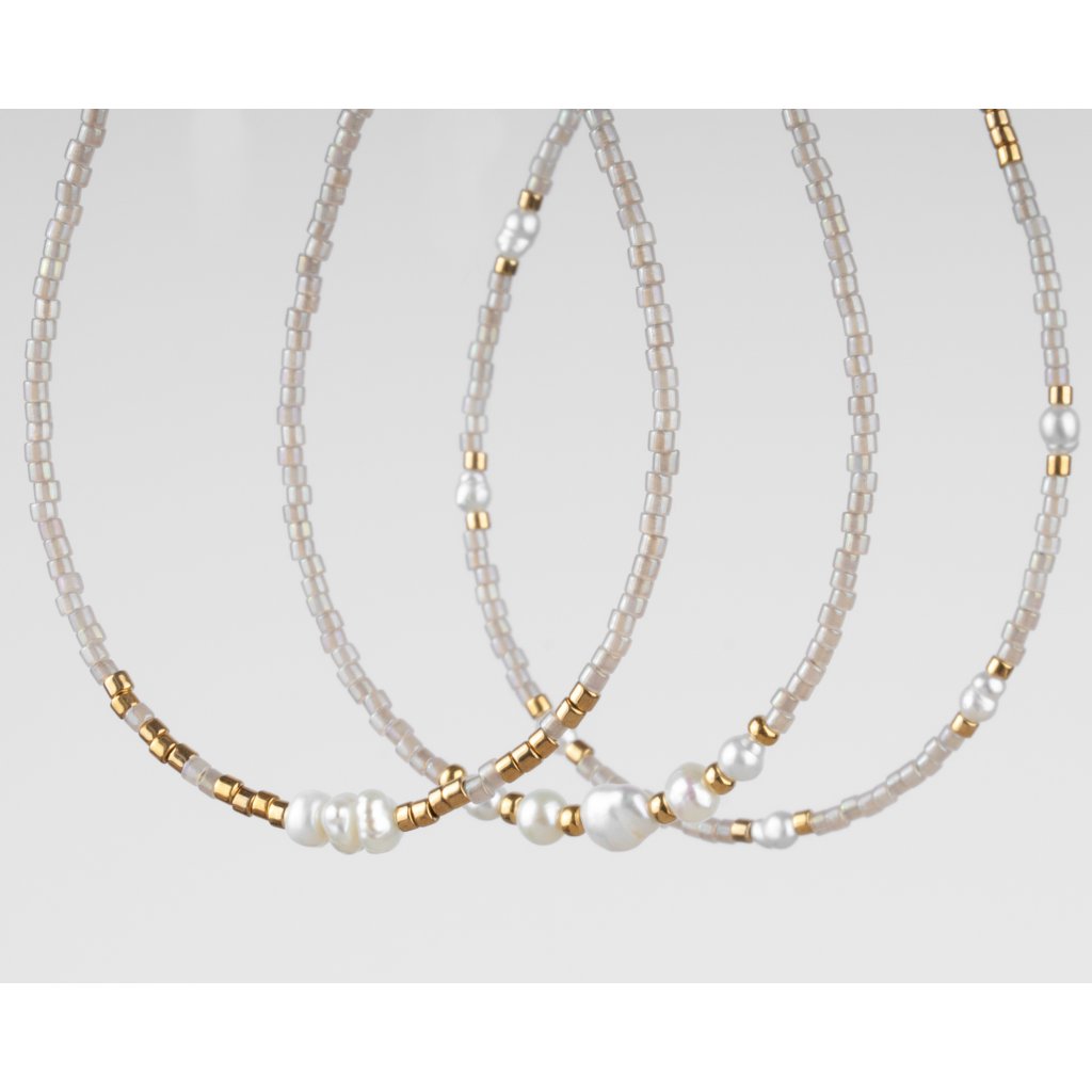 Dopřejte si jemnou eleganci s těmito ručně vyráběnými korálkovými náramky, které vynikají nadčasovou kombinací zlatých gold filled komponentů a říčních perliček. Každý náramek je designován tak, aby působil samostatně i jako součást stylového setu. Set se skládá z několika jemných náramků různého designu, které spolu perfektně ladí. Náramky můžete nosit samostatně pro minimalistický vzhled nebo je kombinovat a vytvořit tak výraznější a vrstvený styl. Elegantní doplněk pro každodenní nošení i speciální příležitosti. Skvělý tip na dárek!