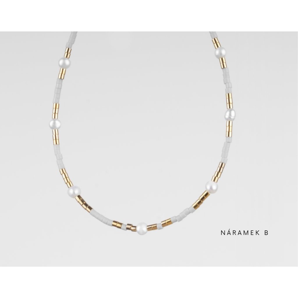 Dopřejte si jemnou eleganci v podobě setu ručně vyráběných korálkových náramků, které zaujmou nadčasovou kombinací pravých říčních perel a zlatých komponentů z gold filled materiálu. Každý náramek je pečlivě navržen tak, aby krásně vynikl samostatně, ale zároveň tvořil harmonický celek v rámci celého setu. Set se skládá z několika jemných náramků různého designu, které spolu přirozeně ladí a umožňují variabilní styling. Náramky můžete nosit jednotlivě pro čistý, minimalistický vzhled, nebo je kombinovat a vytvořit tak výraznější, vrstvený styl.