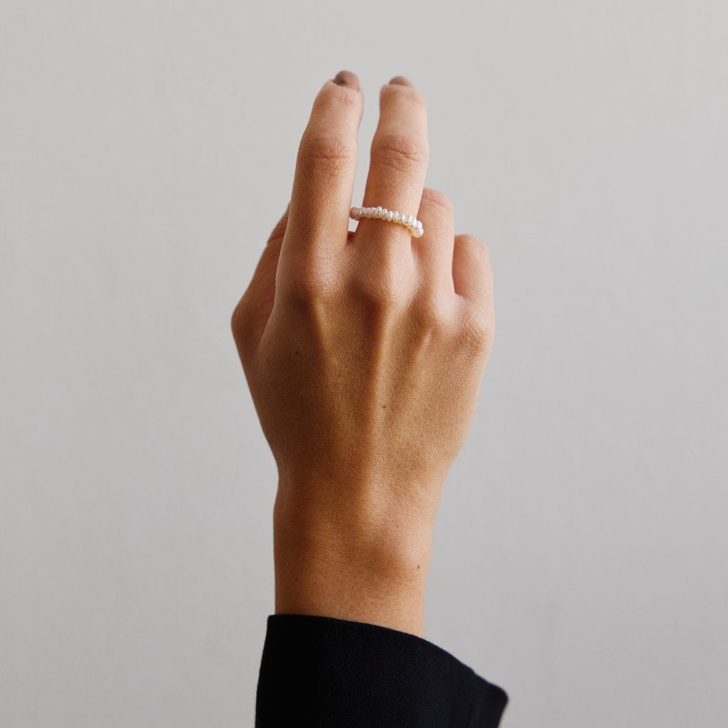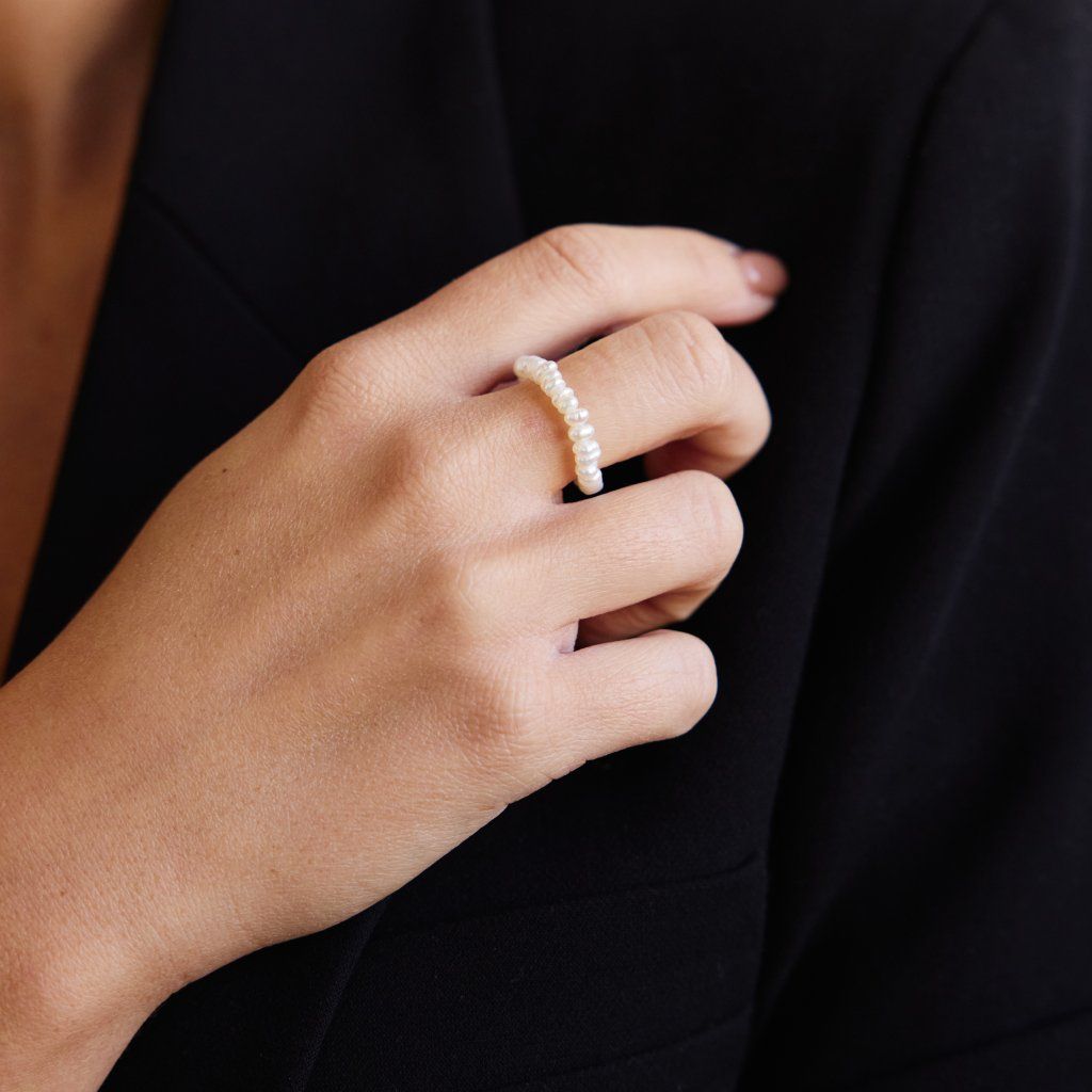 Zamiluj se do perel. Jemné, přesto nepřehlédnutelné jako celý prstýnek. Perel není nikdy dost! Prstýnek WHITE PEARL je kompletně celý z říčních perel navlečený na silikonové niti. Jeho velikost je proto flexibilní. Tvar i odstín každé perly se může lišit. Zkombinujte jej se stejnojmenným náhrdelník WHITE PEARLS.
